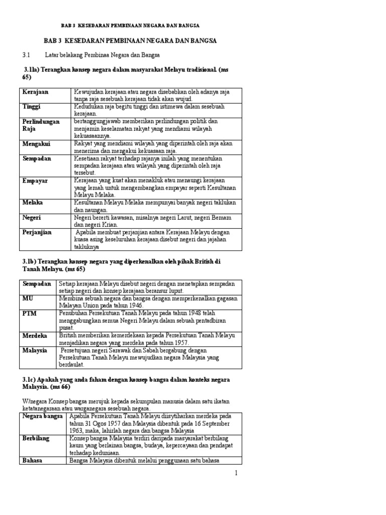 Contoh Jawapan Pembinaan Negara dan Bangsa Ke arah Kemunculan Negara Malaysia Berdaulat 2. Latar belakang konsep negara-bangsa. F3 Harapan untuk masa depan ekonomi Malaysia yang lebih cemerlang.